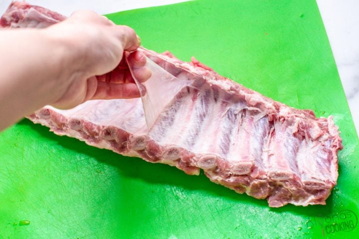 - Using a sharp knife carefully peel off the membrane starting from one end.