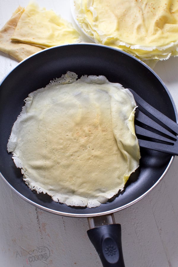 Cooks Tip: cook crepes in 2 pans to fasten up the process. You’ll be done in half the time!
