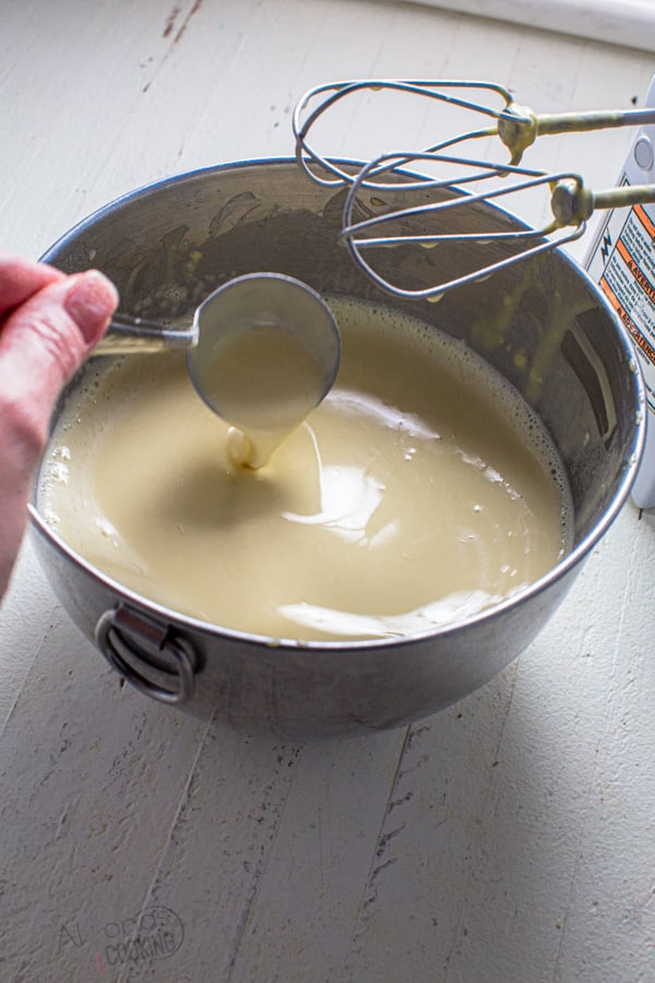- Mix together the eggs and flour. Gradually add in milk to smooth out the flour, then add the rest of the ingredients in the order given.