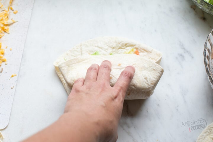 - Tuck in the sides and roll up the burrito.