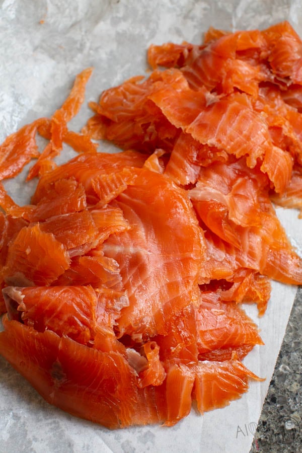 Our favorite way to eat smoked salmon is over a slice of bread or bagel smeared with mayo or cream cheese and topped with cucumbers or purple onions. Smoked salmon goes so well with a cream cheese spread, it’s no wonder a lox spread at a bagel shop can be one too many!