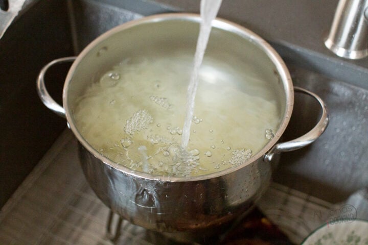 - Meanwhile, bring a pot halfway full of water to a boil.
