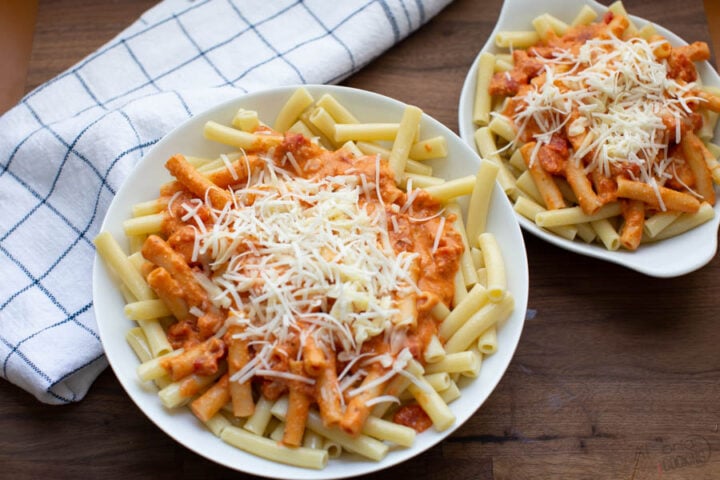 The type of marinara sauce makes a big difference in the overall taste of this dish. If you use a bland tomato sauce, you may need to add additional seasonings. However, the Aldi Priano Marinara Sauce was the best for this ziti recipe.