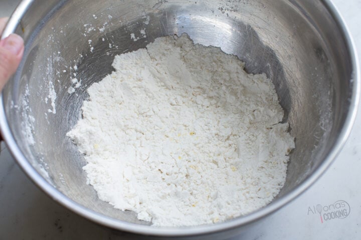 - In a separate bowl, mix together the flour and cornstarch.