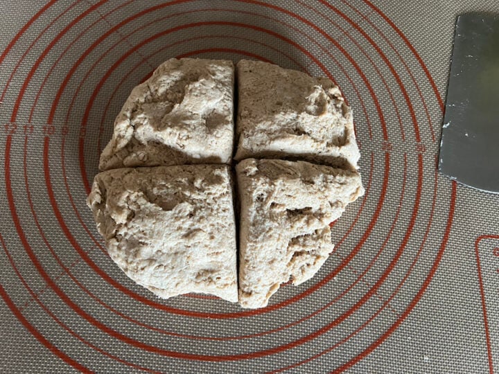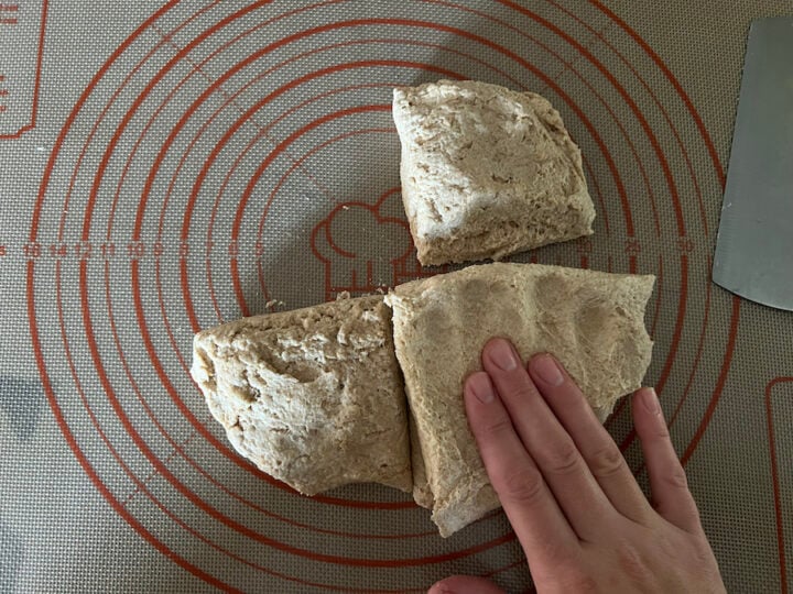 - Transfer the dough onto a pastry mat and cut it into four equal pieces.