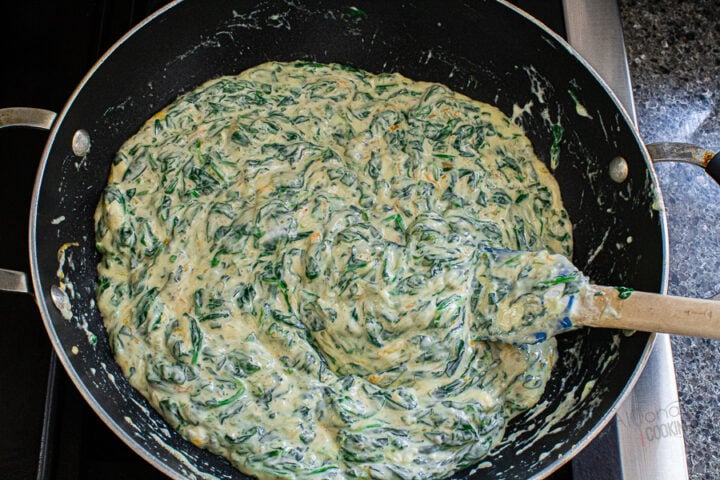 - Frozen Spinach: to use frozen spinach, squeeze the excess liquid out first. Add it after the cream cheese melts to retain its green color.