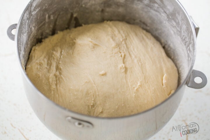 - Add the flour and knead for 6 minutes over low speed. Rest the dough for 10 minutes.